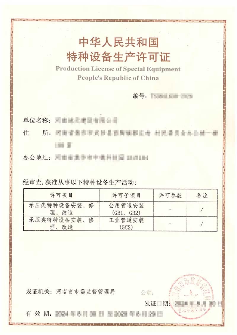 特種設備安裝改造維修許可證