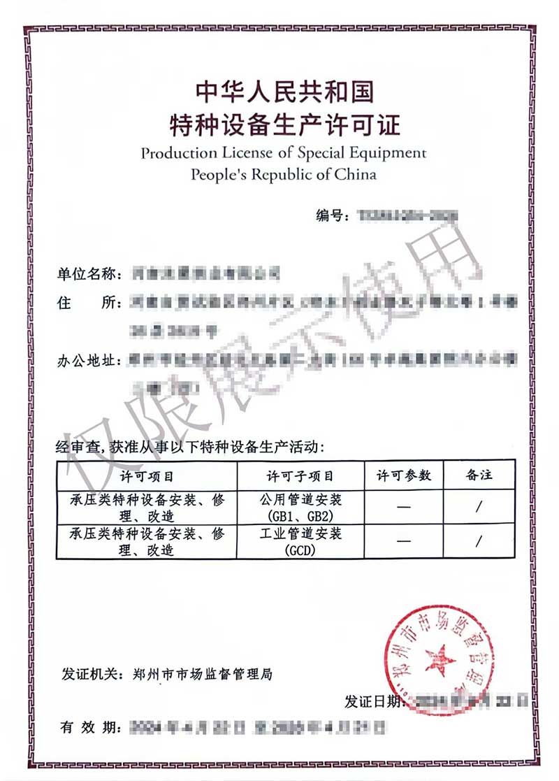 本公司業務范圍包括:特種設備制造許可證、工業產品生產許可證、特種設備設計許可證、特種設備安裝改造維修許可證,壓力管道安裝許可證、生產許可證等咨詢服務。